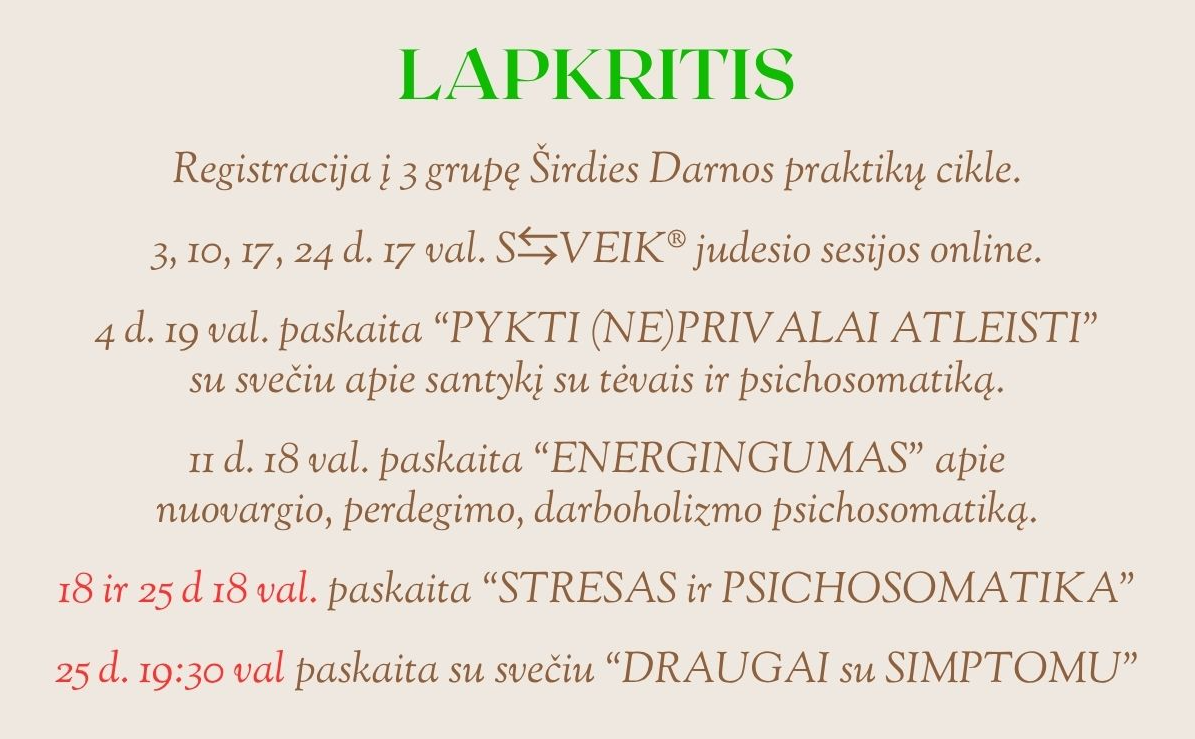 PASTEBĖJIMAS: 25 dieną bus antra dalis apie STRESĄ, tada pertraukėlė ir sekanti paskaita su svečiu.