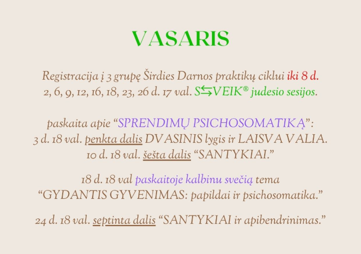 Erdvė norintiems gilintis į save per ryšį su kūnu ir pasąmone, per gilų savęs pažinimą, per sąmoningumą ir veikimą, paremtą S⇆VEIK® sistema ir psichosomatiniu AureaHeart požiūriu.
