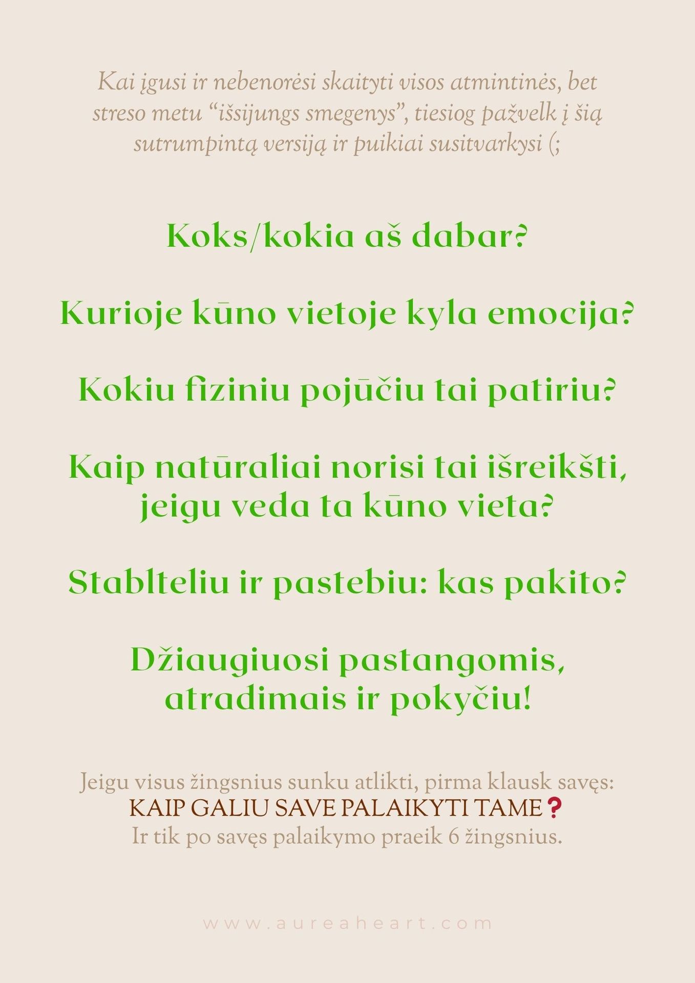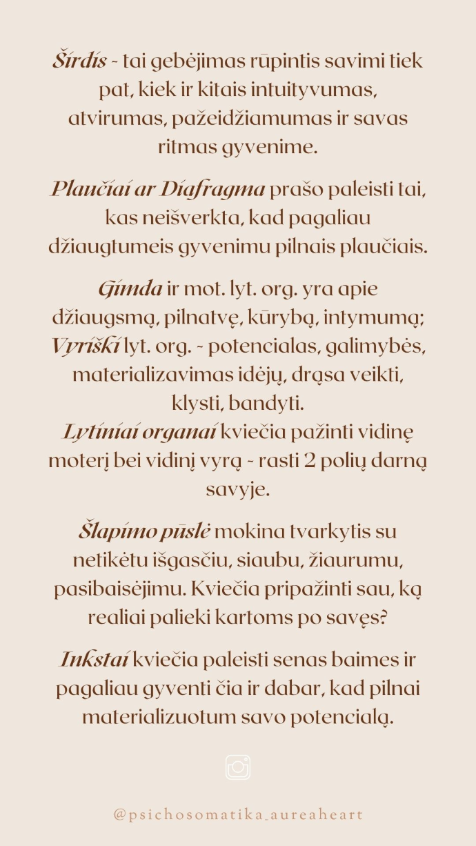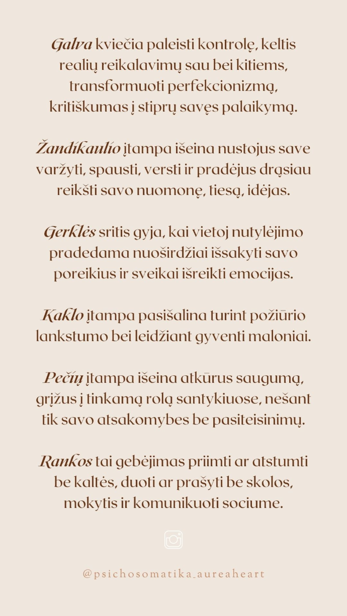 Kūriau su idėja, kad po ranka turėtum esmines kūno organų bei dalių siunčiamas žinutes, kurias kalba Tavo kūnas per (nemalonius) fizinius pojūčius ar simptomus. Kad įprotį griebtis vaisto pakeistų įprotis grįžti dėmesiu į kūną ir į sąmoningą veikimą = S⇆VEIKIMĄ®